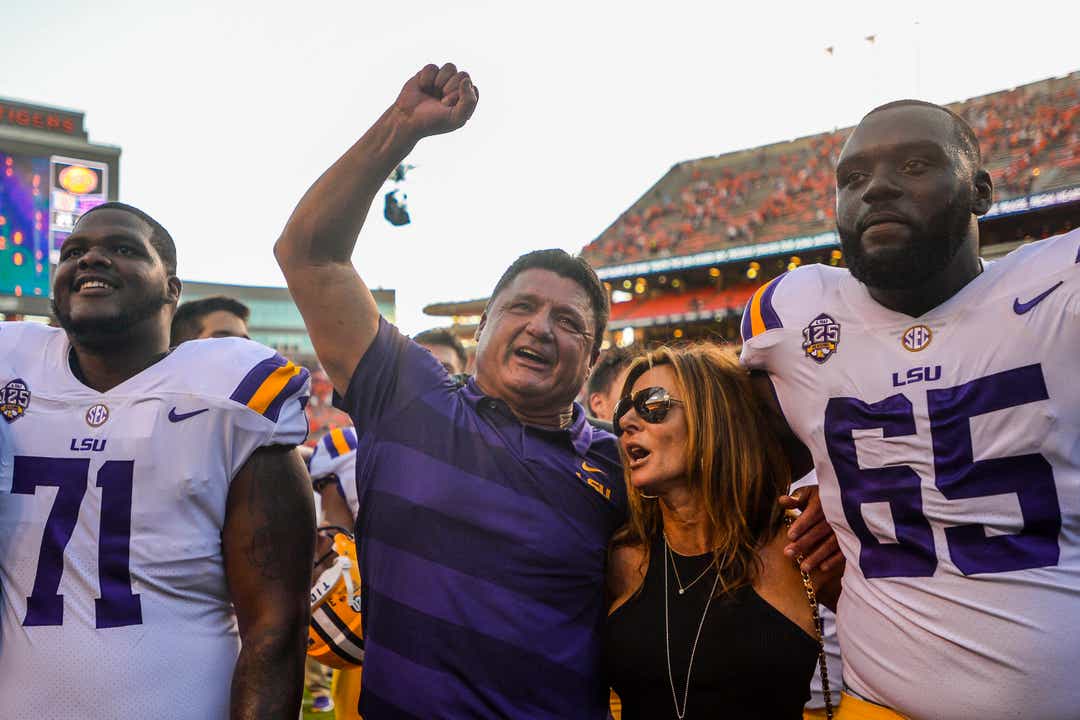 AUBURN, Ala. – It will probably always seem strange, but by now it’s become oddly familiar: Ed Orgeron barreling off the field after unexpected victory, bellowing “Go Tigers!” as only ‘Coach O’ can do. What seemed like an entire locker room singing along, behind closed doors, to Garth Brooks’ version of Calling Baton Rouge. A Louisiana state trooper, ostensibly guarding the visitors’ locker room door, suddenly throwing his head back and yelling at the top of his lungs: