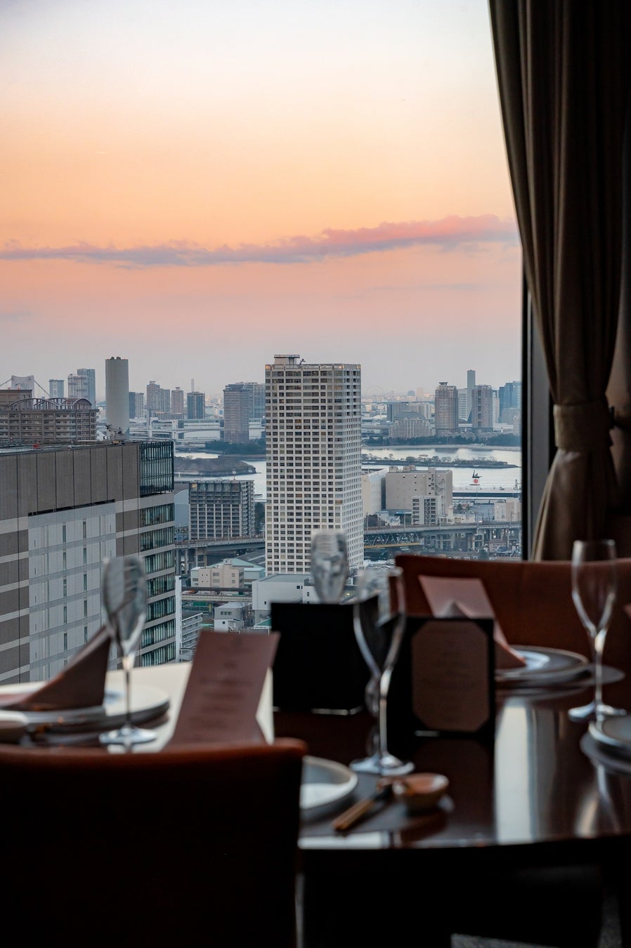 26階の「ザ・スコア・ダイニング」は、音楽を共有するために必要な“楽譜”になぞらえた4つのレストランが競演するエリア。多くの賞に輝くスターシェフたちによる、独創的な美食の数々を楽しめるデスティネーション・レストランです。ギリシャ語で“リズム”を意味するカフェ&バー「リュトモス」は、スコア・ダイニングの世界へお客さまをいざなうエントランスです。続くイタリアングリル「メロディア」は、音楽を構成する要素のひとつであるメロディをイメージ。「リュトモス」の空間とデザインをゆるやかに引き継ぎ、「メロディア」の空中に浮かぶ照明が音符を思わせます。東京のパノラマが広がる圧巻の眺望が堪能できる「チャイナシャドー」は、オーセンティックなチャイニーズをベースに新たな食材やエッセンスを掛け合わせた中国料理を提供します。そしてアトリウムの中央、「リュトモス」と「メロディア」の間には、鉄板焼「風音」。ストリングスが奏でる美食の競演をお楽しみください。