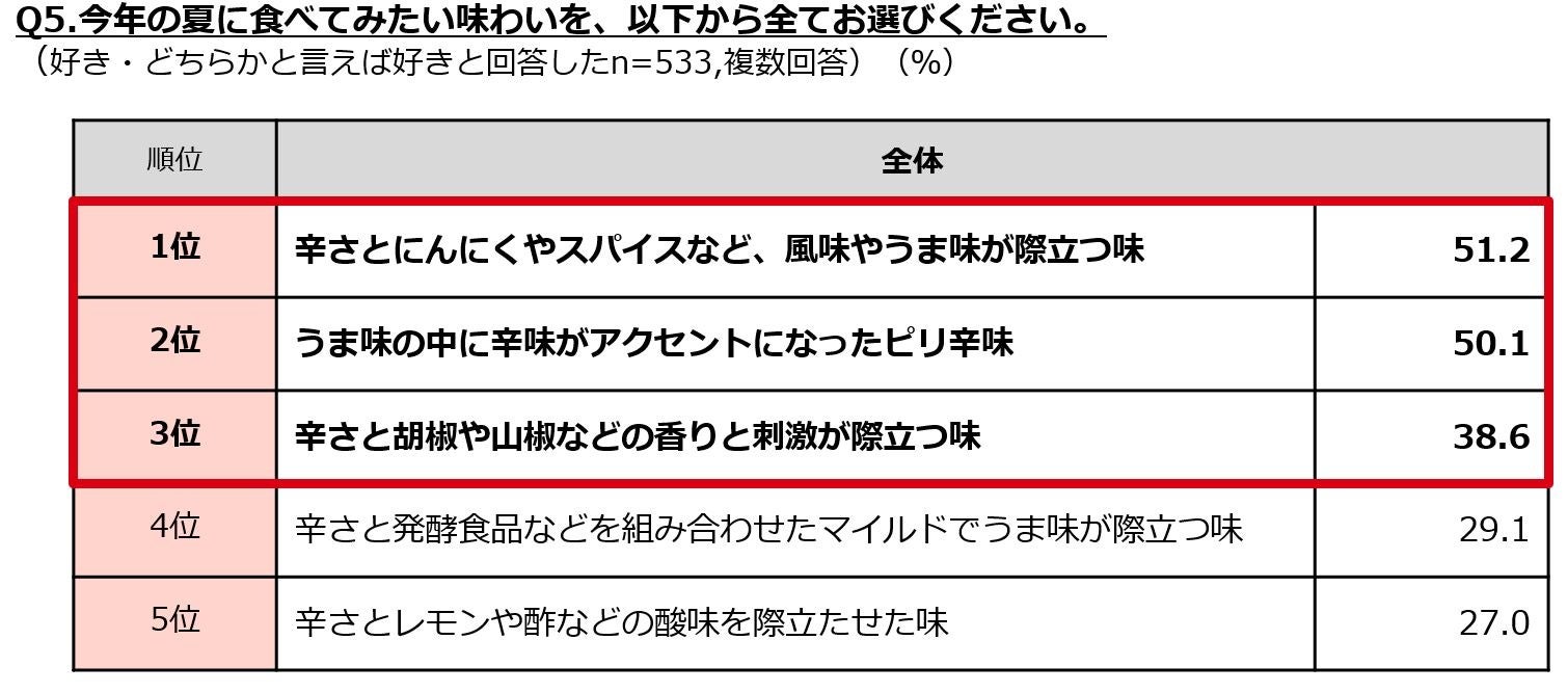 ・今夏に食べたい激辛料理は「辛さとにんにくやスパイスなど風味やうま味が際立つ味」がトップに。