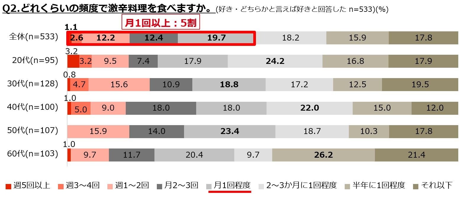・食べる頻度は「月に1回」が最多で、月に1回以上食べる人が約半数。