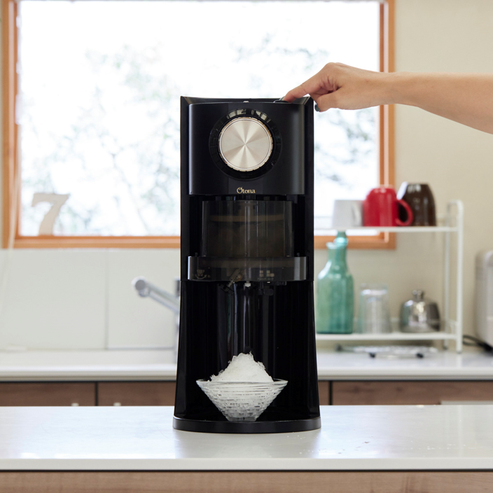 電動式で簡単に専門店のような氷ができるかき氷器。ヒーター機能を搭載し、氷の表面をあたためながら最適な温度で削るため、かき氷専門店のようなすっととけるような食感を楽しむことができます。