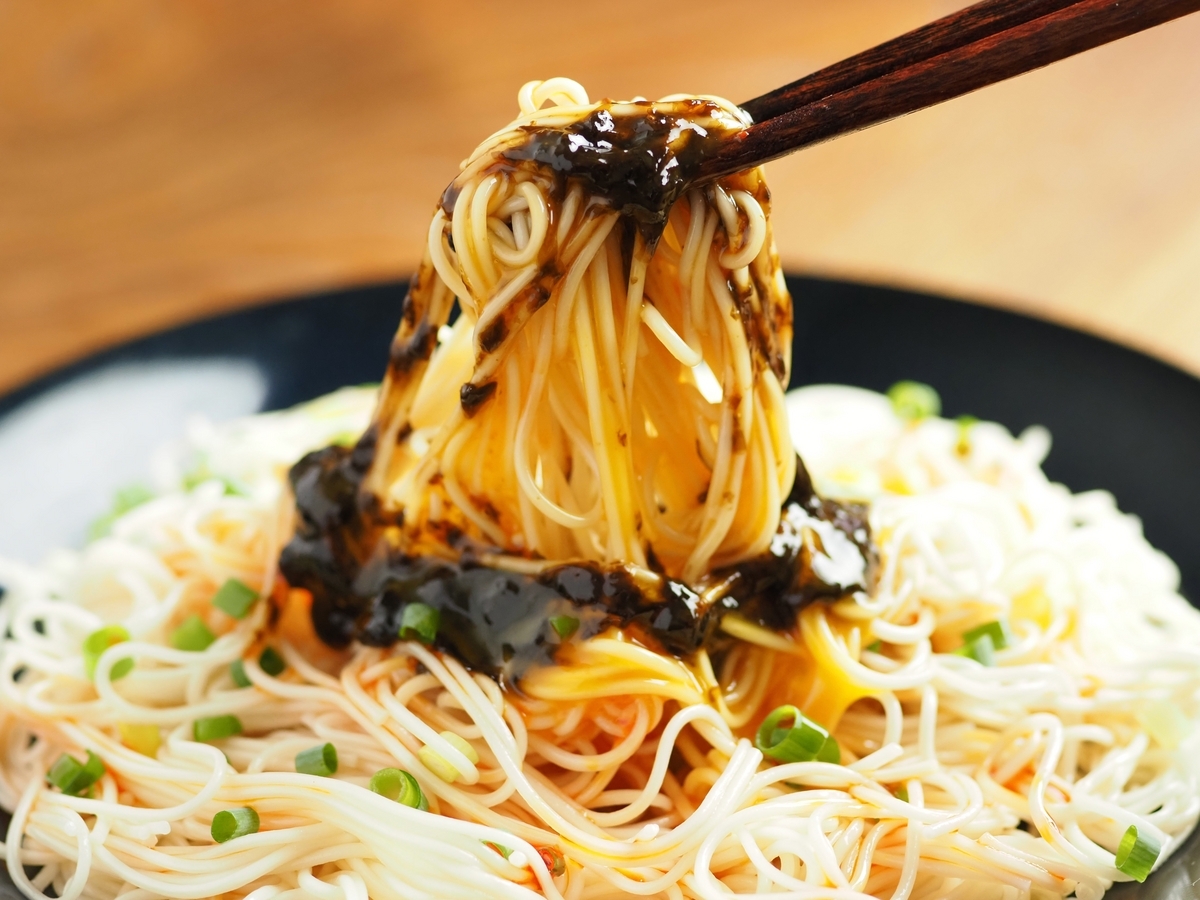 ごま油とラー油、しょう油で食べるピリ辛油そうめん。めんつゆ味のそうめんに飽きた時にもおすすめです。コシが強くなるそうめんの茹で方も一度、お試しください。