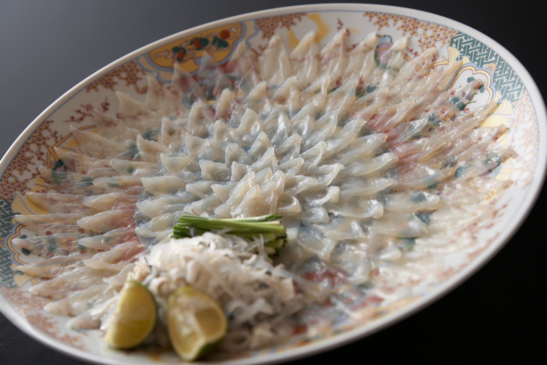 向付       とらふく薄造り(個人盛七寸皿)