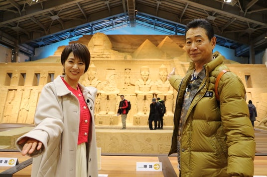 スペシャルゲスト・村井美樹と合流した後、鳥取砂丘にある「砂の美術館」へ。砂と水だけでできた、世界最高レベルの砂像の数々に圧倒されます。