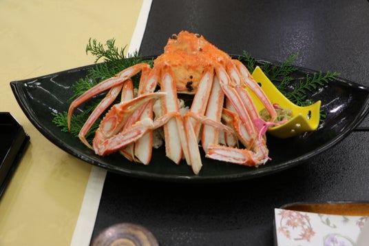 今宵のお宿は「朝野家」。松葉ガニの姿盛りやカニ刺しを堪能。さらに三田村お気に入りの甲羅酒も登場!豪華カニづくしの宴を満喫します。