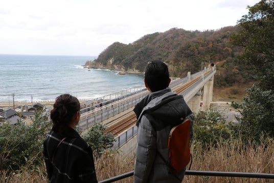 さらに山陰本線で西へと進んだ2人は名所・余部鉄橋へ。「空の駅」からの絶景を堪能します。